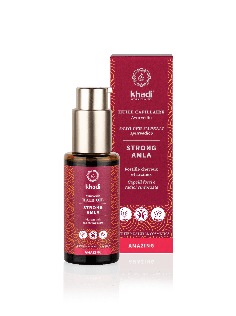 L’Huile pour cheveux et cuir chevelu khadi Strong Amla – pour des cheveux sains, forts et brillants de la racine à la pointe.